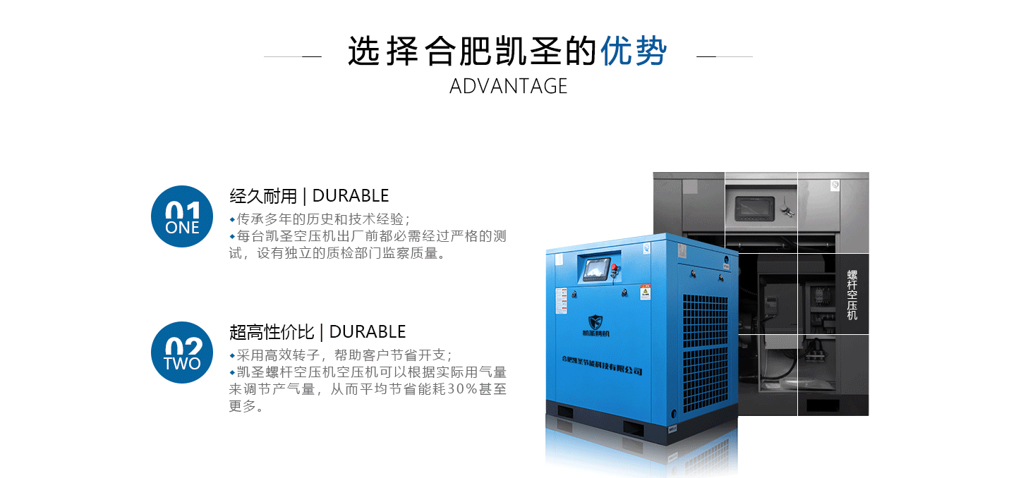 合肥凱圣節(jié)能科技有限公司是從事永磁變頻螺桿壓縮機(jī)系統(tǒng)的設(shè)計、制造、安裝、調(diào)試、維修與一體的公司。 在多年的螺桿空壓機(jī)研發(fā)與推廣歷程里,凱圣聚集和培養(yǎng)了大量壓縮機(jī)技術(shù)設(shè)計和管理人員,迅速發(fā)展成為集研究、生產(chǎn)、銷售、服務(wù)等環(huán)節(jié)為一體、嚴(yán)格按照標(biāo)準(zhǔn)執(zhí)行的企業(yè),公司成立開始,即以滿足客戶的實際需求為己任,大力開拓國內(nèi)外節(jié)能型空壓機(jī)市場,并始終保持創(chuàng)新精神,全力研發(fā)更為節(jié)能的螺桿式空壓機(jī),努力站在空壓機(jī)節(jié)能領(lǐng)域的排頭位置。 應(yīng)用范圍:公司產(chǎn)品廣泛應(yīng)用于機(jī)械、輕工、紡織、食品、石油、化工、冶金、礦山、電力、城建、醫(yī)學(xué)研究和科研等各行業(yè)中,將為節(jié)約能源做出巨大貢獻(xiàn)。公司秉承“信譽(yù)至上,...